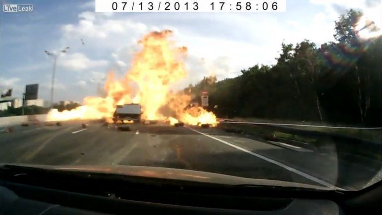 Ce ar trebui să faci când un camion plin de butelii de gaz are un accident în faţa ta? VIDEO