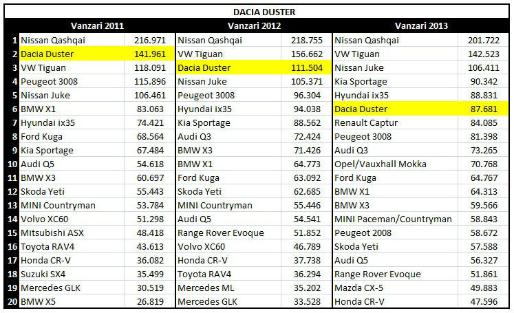 Practic, în doi ani de zile vânzările lui Duster pe plan european aproape s-au înjumătăţit, ceea ce nu e chiar îmbucurător dat fiind că Duster activează în cel mai dinamic segment auto.