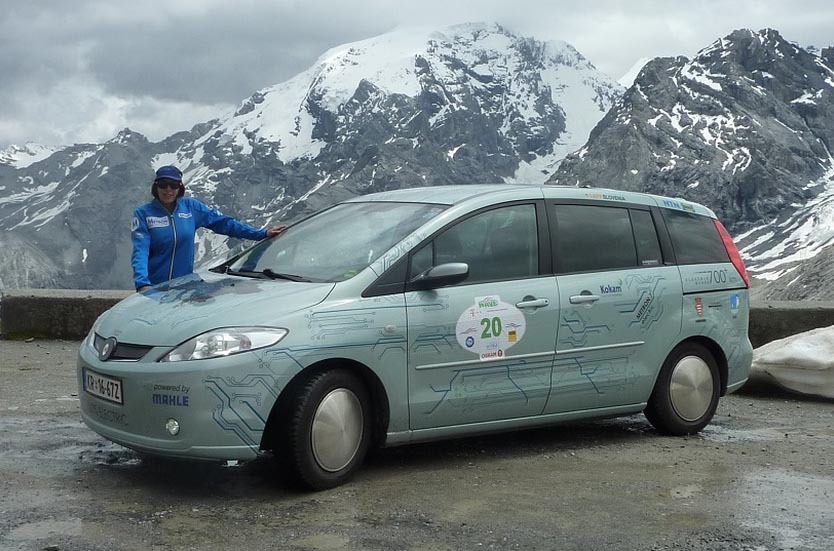 Mai nou, slovenii au decis să transforme o maşină familistă. Aşa încât au luat o Mazda5 din precedenta generaţie, i-au înlocuit propulsia convenţională cu una electrică şi au dotat-o cu baterii de mare capacitate şi densitate, capabile să-i confere maşinii o autonomie de 700 km. Cel puţin în teorie.
