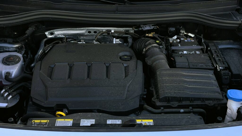Eu am avut la dispoziție tradiționalul 2.0 TDI, care în acest caz produce 193 CP și 400 Nm. Această motorizare vine în standard cu tracțiune integrală. Toate mașinile sunt dotate în standard cu transmisie automată, indiferent de motorizarea aleasă. La fel ca în cazul noilor generații Passat sau Tiguan, transmisia manuală nu este prezentă nici pe noul Tayron.