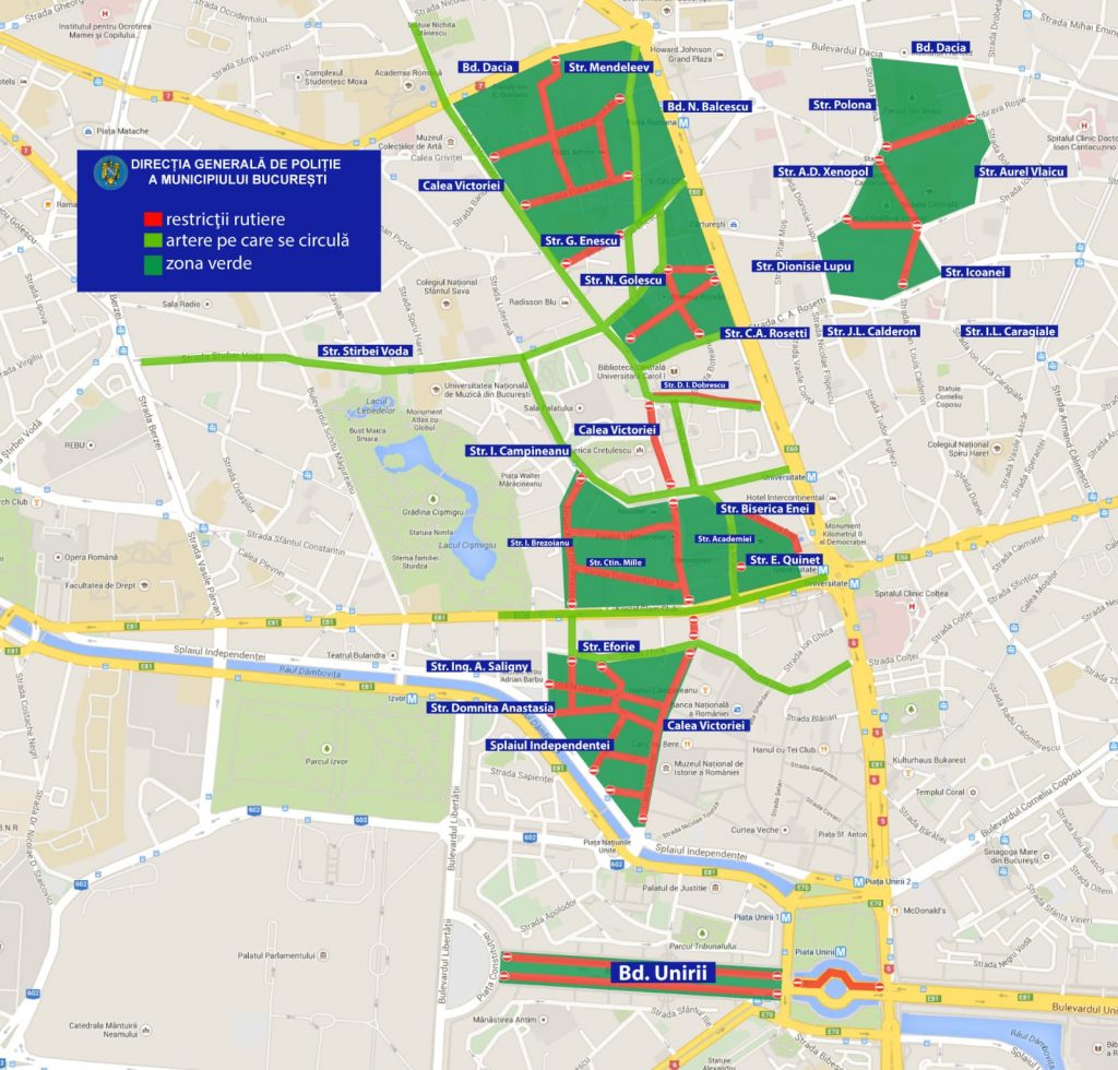 • Zona 6: – Str. G. Enescu – Str N. Golescu – Calea Victoriei – Str. C.A. Rosetti – Bd. N. Bălcescu.
