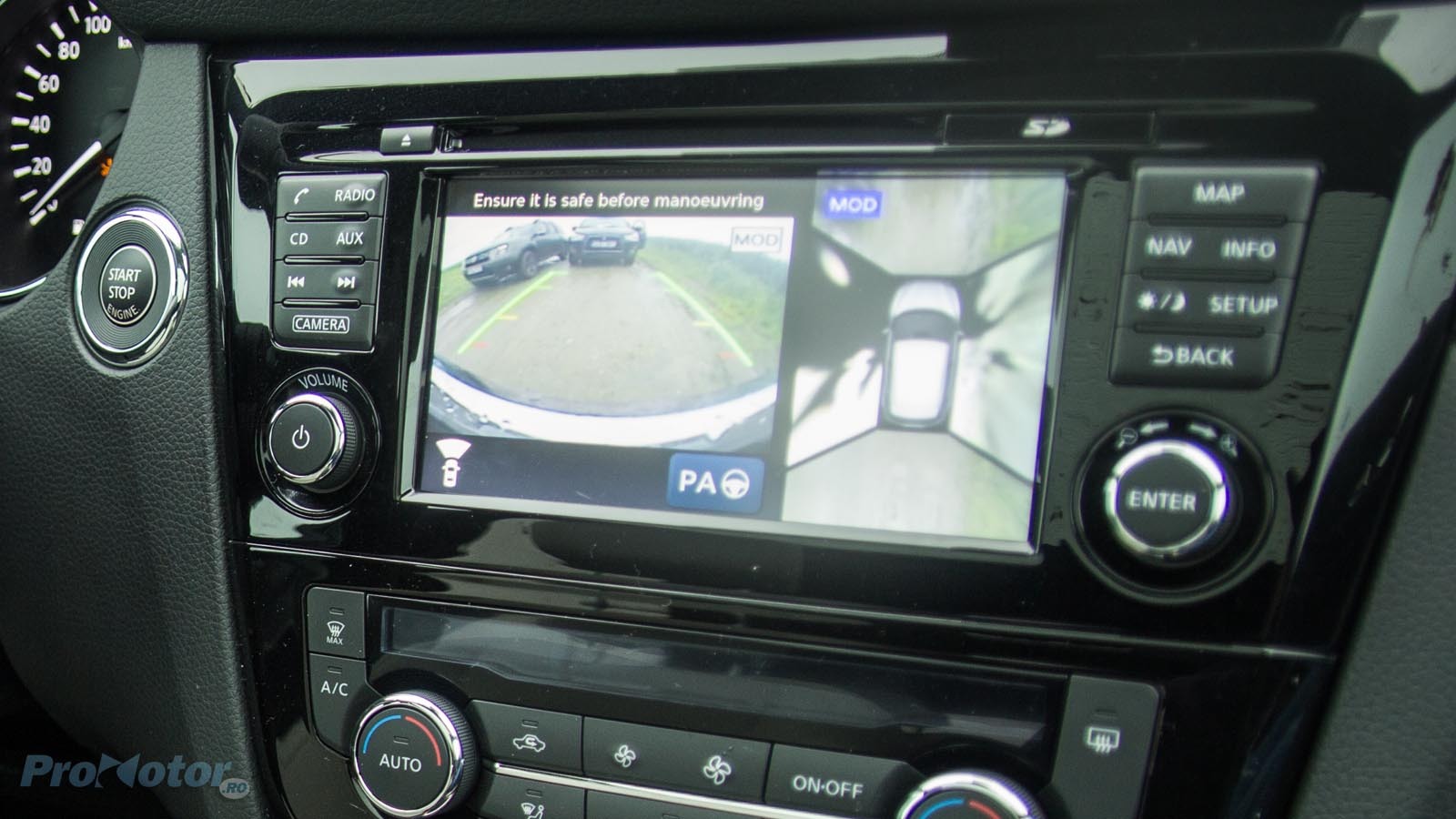 Pe de altă parte, telefonul meu cu sistem de operare Windows s-a conectat cel mai rapid şi fără bătăi de cap la sistemul multimedia Nissan Connect, iar modul intuitiv de operare a meniului m-a făcut imediat prieten cu maşina. Termenul ”intuitiv” se potriveşte şi comenzilor pentru aerul condiţionat, aşa încât viaţa la bordul lui Qashqai este foarte facilă, mai ales la manevre, graţie sistemului de asistenţă la parcare cu Around View Monitor.