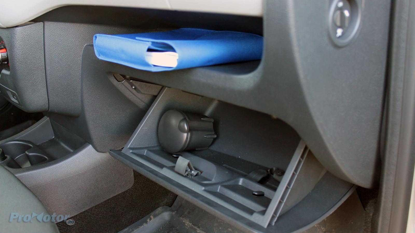 Trei la mână: decât un torpedou mic şi un fel de etajeră prea puţin încăpătoare deasupra lui, nu mai bine era un torpedou mai măricel? Şi ce e cu buzunarul fals de sub butonul pentru reglajul oglinzilor? Unele lucruri chiar nu pot fi puse pe seama sintagmei ”e maşină low-cost”.